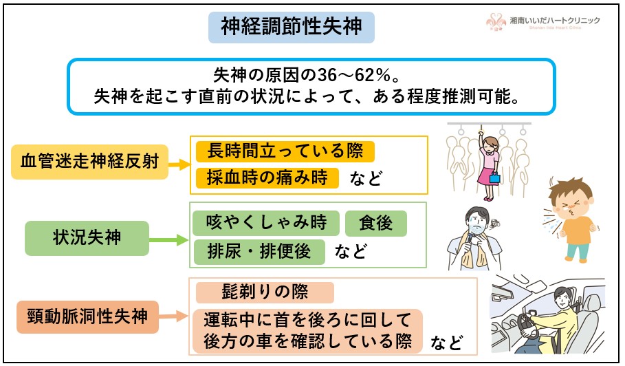 代表は、咳やくしゃみ、排尿・排便後、食後の失神です。