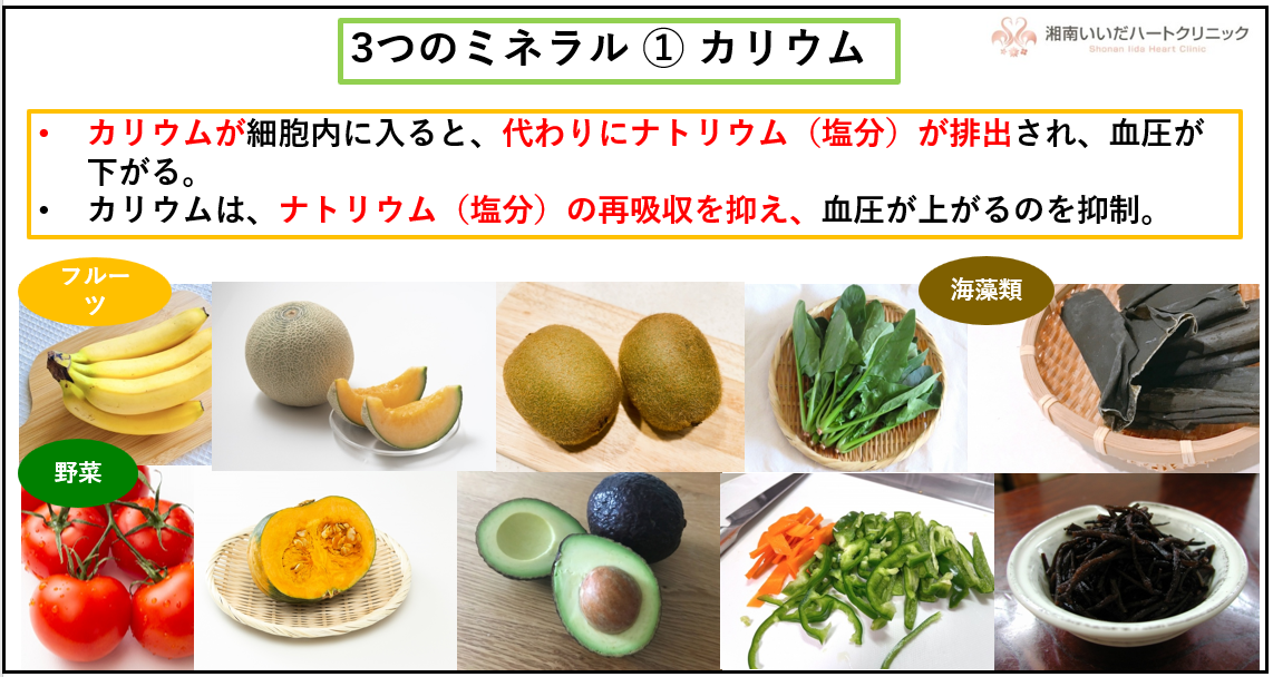 さらに、カリウムは、ナトリウム(塩分)の再吸収を抑え、血圧が上がるのを抑制する効果もあります。