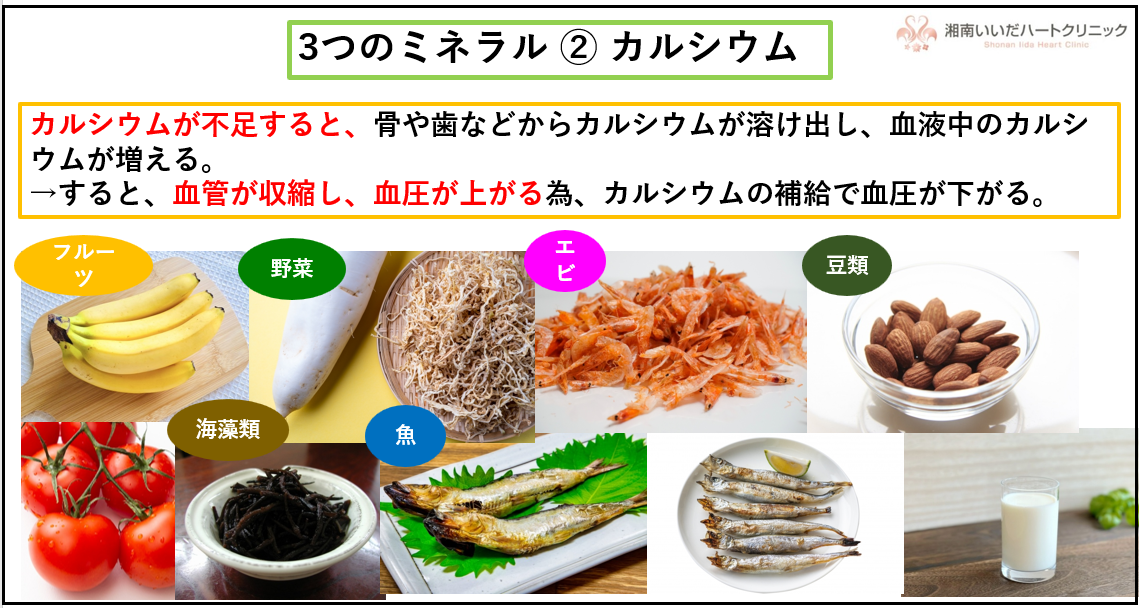 すると、血管が収縮することで血圧が上がる為、カルシウムの補給で血圧が下がります。