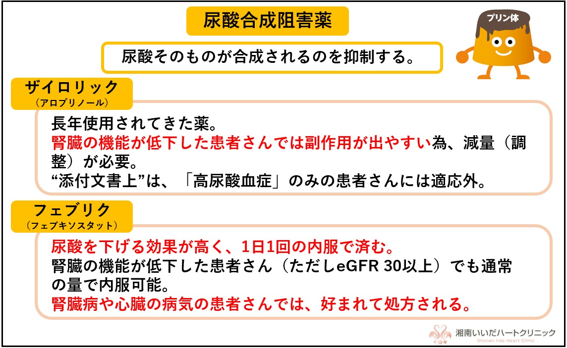 特に、腎臓病や心臓の病気をお持ちの患者さんでは、ザイロリックよりもフェブリクが好まれて処方される傾向があります。